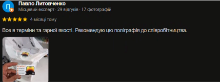 Безумовне дотримання дедлайну. Компанія підтримує запас витратних матеріалів, що дозволяє скоротити час очікування замовлення.